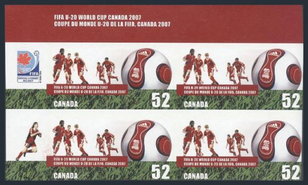 IMPERFORATE CORNER BLOCK of the 52¢ FIFA World Youth Championships. Pristine fresh, XF, NH. Scarce (Image)