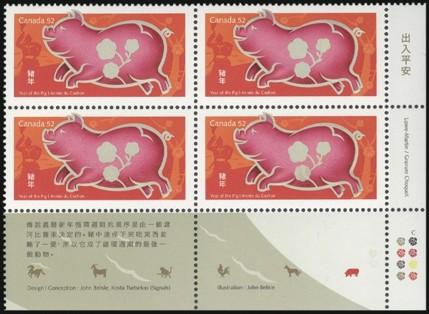 of Plate Blocks of the 52¢ Lunar New Year MISSING GOLD FOIL STAMPINGS ERROR. Pristine fresh, VF, NH. Scarce (Image)