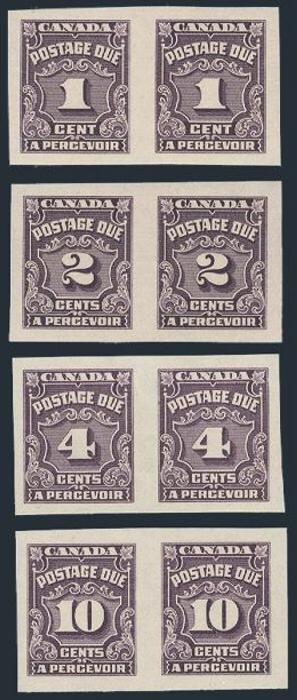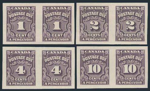 6068 J15a-20a imageJ15a-20a, Complete set of 4 diff Postage Due IMPERFORATE PAIRS, large margins, fresh colour, VF, LH (Image) Cat 1,200.00