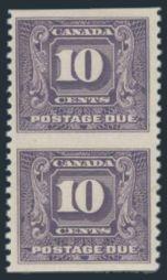 6064 J10a imageJ10a, Vertical pair IMPERFORATE BETWEEN, beautifully centered, pristine fresh, XF, NH. This error is notorious for being off centre. This pair is the best one we have ever encountered! AN OUTSTANDING ITEM (Image) Cat 5,000.00