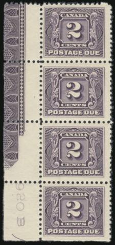 6060 J2 imageJ2, LL corner vertical margin strip of 4 showing full strong LATHEWORK TYPE A at left (beside the top 3 stamps). Also has "920B" imprint & cutting guide arrow. F-VF, NH. A RARITY (Image) Cat 7,500.00+
