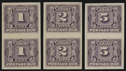 6057 J1b-4b imageJ1b-4b, Set of 3 diff IMPERFORATE PAIRS, all with full margins, excellent colours, VF. Only 100 pairs of each exist. Scarce (Image) Cat 1,500.00