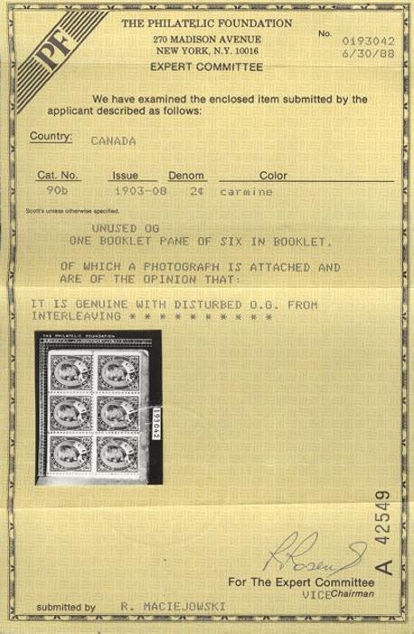 6124 BK2 imageBK2, KE Booklet containing one fine NH pane of 6 (DG from interleaving), plus 2 interleaving pages and a rate sheet. Creasing / soiling on outside Booklet, which is accompanied by a 1988 Philatelic Foundation Certificate. Cat $1,500+ (Image) (View Certificate)