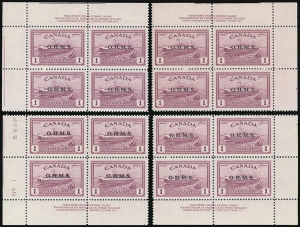6101 O10 imageO10, M/S of Plate #1 Blocks of the $1 Ferry OHMS. Select centering, fresh, VF, NH (Image) Cat 2,800.00
