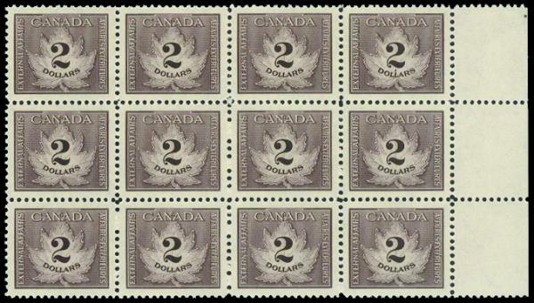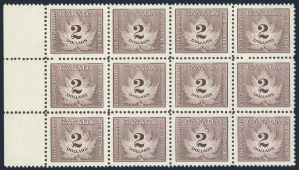 6198 FCF4 imageFCF4, Margin block of 12 of the $2 Consular Fee, with white paper and white gum. VF, NH (Image) Cat 396.00