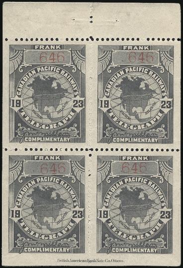 6294 TCP36 imageTCP36, PANE of 4, 1923. VF, NH, couple natural gum bends (Image) Cat 900.00