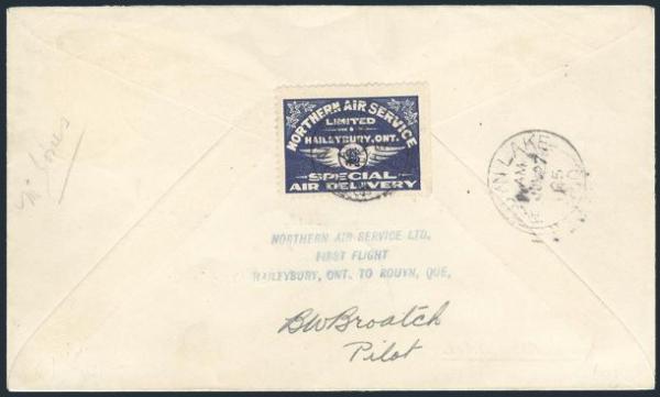 Northern Air Service tied cach PILOT SIGNED Haileybury to Rouyn 27 June 1925 FFC. F-VF (Image)