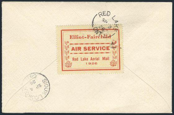 Elliot-Fairchild Air Service tied by Red Lake 3 Sept 1926 split-ring cancel on Airmail cover to Sioux Lookout addr to Montreal. VF (Image)