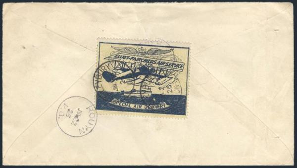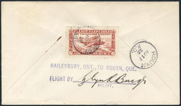 Elliot-Fairchilds Air Service tied on Haileybury to Rouyn 22 July 1926 Airmail cover. Addr to Peterborough, Ont. F, some cover creases (Image)