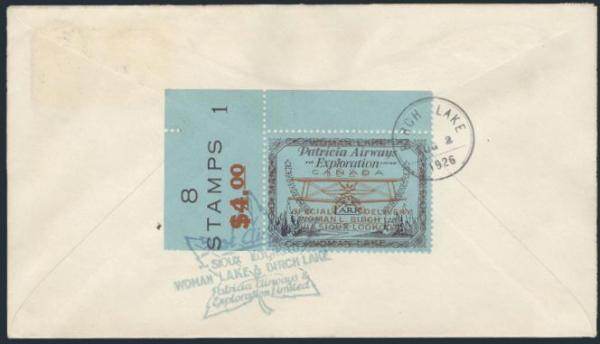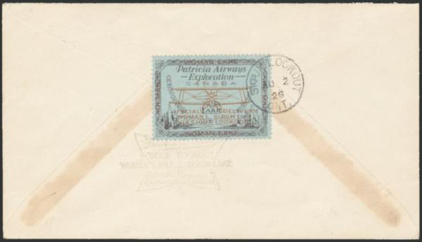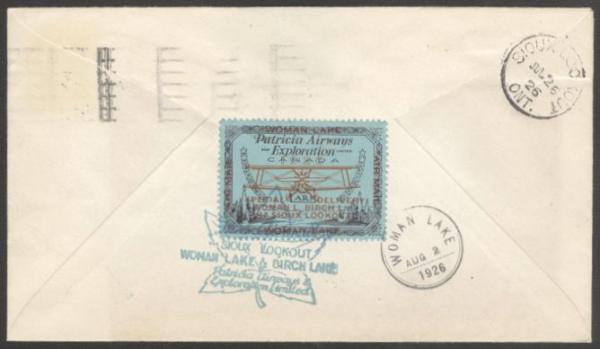 Patricia Airways tied on cach Sioux Lookout to Woman Lake 2 Aug 1926 FFC (only 216 pieces flown). F-VF (Image)