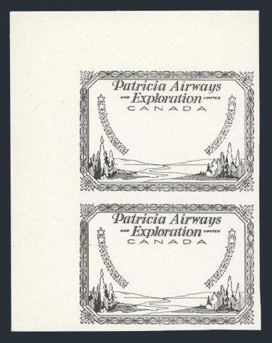 Imperf top margin proof single showing no airplane, in black on white card. XF, NH (Image)