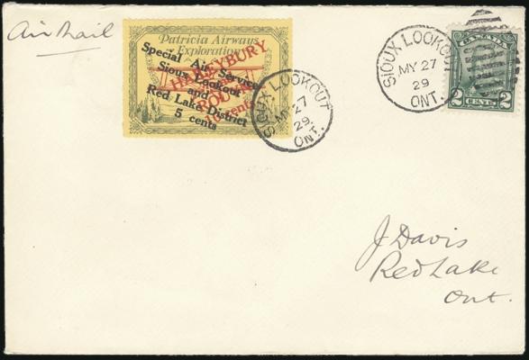 Patricia Airways tied on Sioux Lookout to Red Lake FFC 27 My 1929. VF (Image)