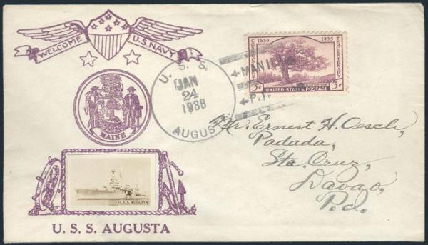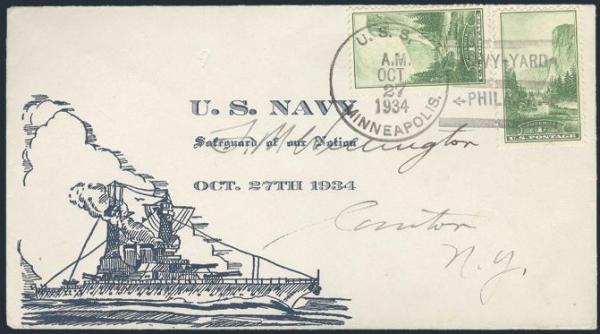 Historic collection of 35 Naval ship cancels on covers & postcards, from 1909-41. A few covers have attractive cachets. All neatly written up in detail on pages. Many saw action around the globe. Incl USS's Cleveland, Portland, Salt Lake City, Chicago, Cincinnati, Tuscaloosa, Minneapolis, Potomac, Louisiana, North Dakota, etc. F-VF (Image)