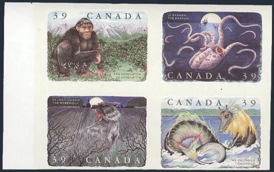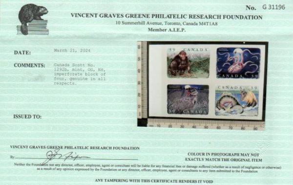 1292b, IMPERFORATE sheet margin block of the 39¢ Legendary Creatures. XF, NH. Has 2024 Greene Foundation Certificate. Cat $2,500 (Image) (View Certificate)