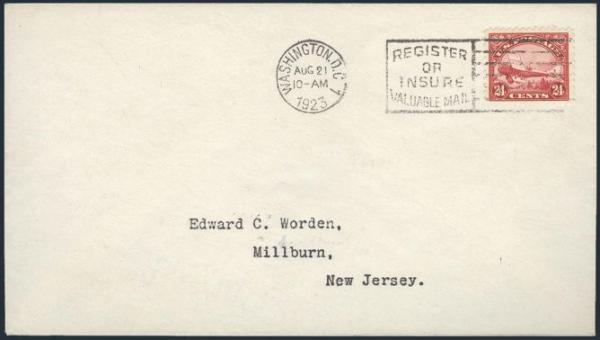 C6, Scarce FDC with neat Washington DC 21 Aug 1923 cancel. Has typed address to Edward Worden in New Jersey. Fresh, clean, VF. 2025 Scott $750 (Image)