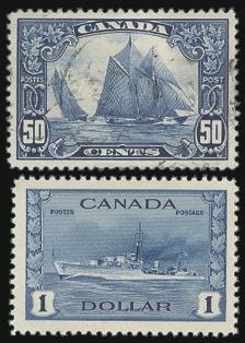 Grain; 10¢ Loyalist; 1935 Silver Jubilee set; 1938 Pictorials to $1 Chateau: complete War set to $1 Destroyer; $1 Fish; etc. Also has useful coils with some in pairs. F-VF, some NH. We estimate Cat between $2,500 - $3,000 (Over 150) (Image)