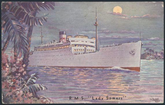 CANADA "LADY SOMERS" SHIP POSTCARDS: 218 (2), 219, Tied by USA/Canada cancels, 1936-7 on 3 similar postcards in colour depicting Cdn Ntl Steamship CNS LADY SOMERS addr to Canada & USA. All have Lady Somers ship cancel