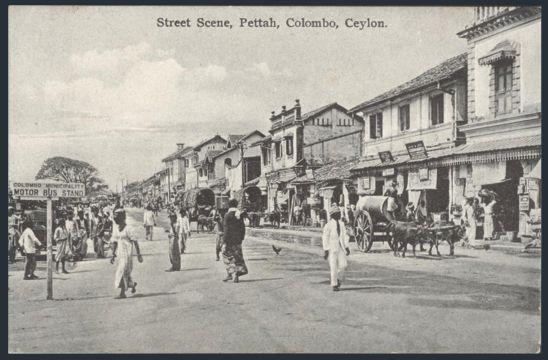 CEYLON POSTCARD COLLECTION: Fascinating collection of used / unused; colour & b/w photo postcards, primarily KE-KGV era (a couple later). Most with foreign destinations (mainly Scotland). Depict Colombo scenes,