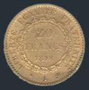 France 1870 20 Francs GOLD coin with "BB" (Strasbourg) mint mark. Uncirculated (Image)