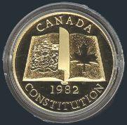 CANADA 1982 $100 GOLD: Special brown leather case with a proof 22Kt 1982 $100 GOLD Constitution coin. Contains ½ oz of pure gold
