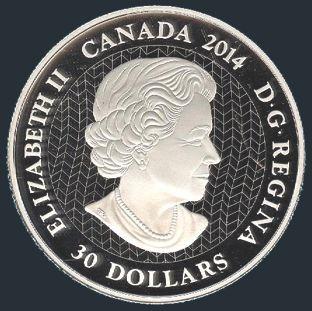 CANADA $30 PROOF COIN: Silver $30 Proof encapsulated coin from 2014 depicting Contemporary Art. Only 5,000 minted. Has a plush case & certificate (Image)