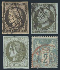 3/88a, Duplicated accumulation neatly arranged & identified in a stockbook. Has perf & imperf Ceres & Napoleon issues; plus Pence & Commerce issues. Has a variety of shades, printings & cancels incl numeral lozenge & star types. We noted 3 (4 - $136), 6 (5 - $150), 12 (3 - $188), 13 (4 - $250), 19-20 (4 - $330), 24 ($110), 54 (6 - $330), 64-70 ($456), 83 ($110), etc. Majority VG-VF. 2026 Scott $6,595 (528) (Image)