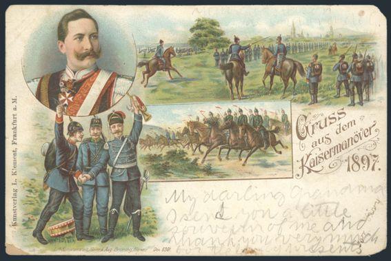 Historic collection of 13 diff used / unused b/w photo or colour illustrated postcards from 1899 up to WWI. Depict Kaiser Wilhelm, battle scene, monuments, portraits of Kaiserin, previous rulers, etc. VG-VF (Image)
