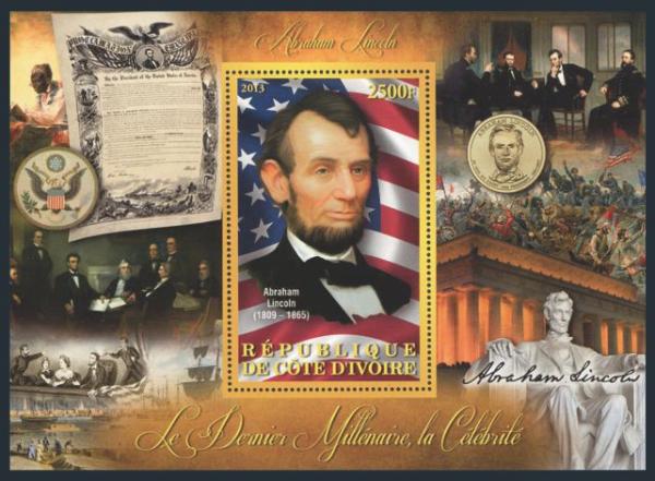 Interesting collection of 65 diff souvenir / miniature sheets depicting AMERICAN PRESIDENTS. The sheets are all non-USA from various countries, from 1939-2000's. Has 50 mint NH and 15 CTO. Many depict John F. Kennedy. Also has one Gold and one Silver Foil stamp. VF (Image)