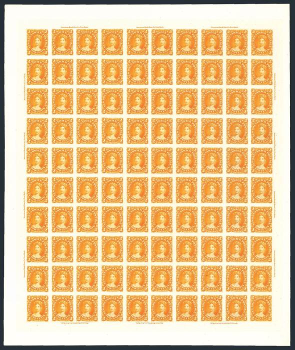 10Pii, 10Piii, 10Piv, Complete Plate Proof sheet of 100 on India paper on card. Shows the three diff "SPECIMEN" overprint types in red (Type B on 50 Proofs, Type C on 40 Proofs and the elusive Type D on 10 Proofs). Pristine fresh, VF. A RARE PROOF SHEET (Image)