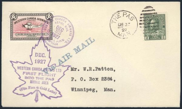 CL40, Collection of 4 diff Western Canada Airways FFC's from 1927-9. Incl flights from The Pas to Cold Lake, Gold Pines to Favourable Lake, Sioux Lookout to Pickle Lake & Lac La Ronge to Prince Albert. F-VF (Image)