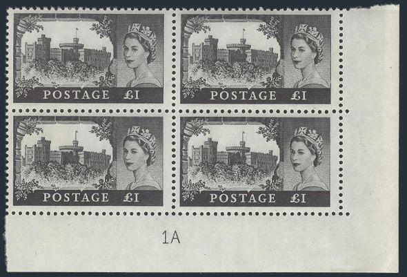 1115 525-8 image525-8, Specialty collection of 13 diff LR Castles Cylinder blocks with values from 2Sh 6p - £1. ALL WITH DIFF PLATE NUMBERS. F-VF, NH (SG £203) (Image) Estimate 100.00+ $Cdn