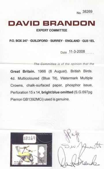 1114 462p image462p, BRIGHT BLUE OMITTED error used with neat CDS cancel. VF. Has 2008 Brandon Certificate (SG #697pg, Cat £2,500 or $4,650 Cdn) (Image) (View Certificate)