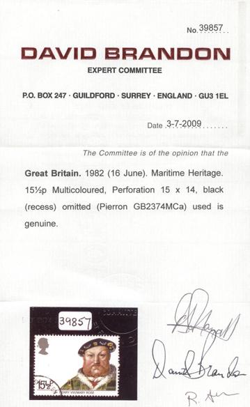 1118 991 image991, Very scarce BLACK OMITTED (no ship & waves) error, lightly cancelled (SG #1187b, Cat £1,250 or $2,325 Cdn). XF. Has 2009 Brandon Certificate (Image) (View Certificate)