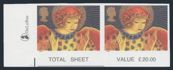 1120 1834 image1834, Scarce sheet margin IMPERFORATE PAIR of the 20p Christmas Angel. Fresh, XF, NH (SG #2064a, Cat £400) (Image) Estimate 400.00+ $Cdn