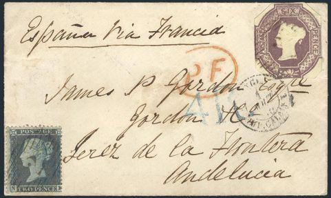 shape), 17, Tied on neat miniature size 1856 cover to Andelucia, Spain. Has m/s "Espania Via Francia" with various markings incl a French RPO. F (Image)