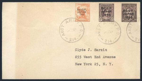 1406 M1-3 imageM1-3, Neatly tied by 1948 Aust Army P.O. #214 cancels on cover to New York. F, toned (Image) Estimate 45.00+ $Cdn