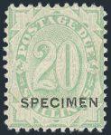 1404 J22 imageJ22, TWENTY SHILLING with "SPECIMEN" overprint. VF, NG (Cat $4,500 US as a normal stamp) (Image) Estimate 500.00+ $Cdn
