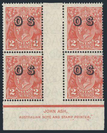 1411 O3 imageO3, Two bottom margin "JOHN ASH" gutter blocks. One is mint, the other is used. F (Image) Estimate 100.00+ $Cdn