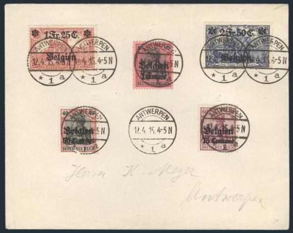 by Antwerp 12 Apr 1915 CDS's on local WWI Occupation cover. VF (Image)