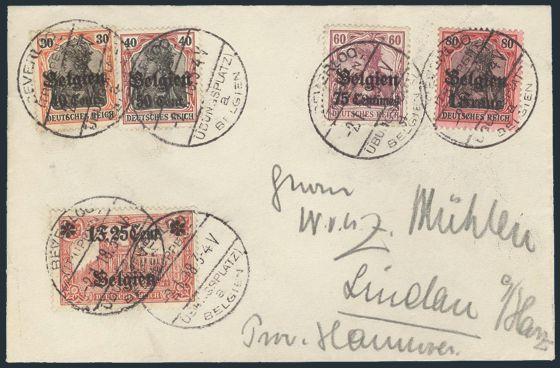 N19-20, N23, Tied by Beverloo 2 Jan 1918 CDS's on cover to Lindau, Germany. VF. Scarce & attractive. WWI German Occupation cover (Image)