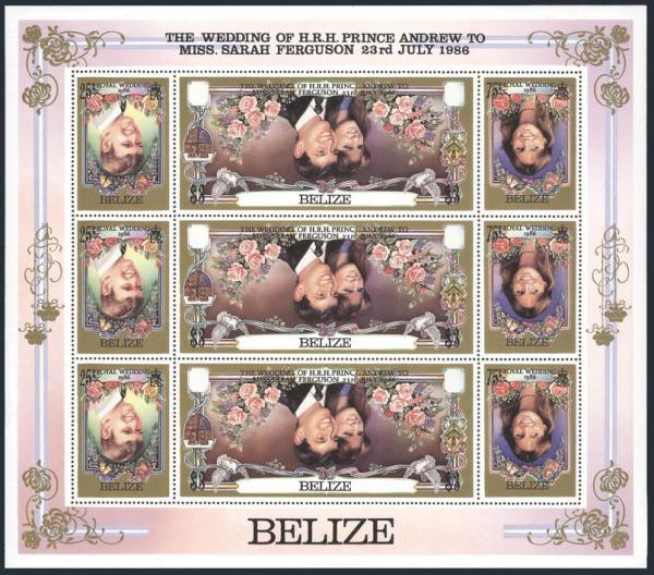1614 833 image833, Two complete Royal Wedding miniature sheets with 3 se-tenant strips in each. One is normal & the other has INVERTED CENTRES. VF, NH. An eye-catching lot! (Image) Estimate 100.00+ $Cdn