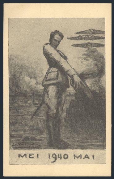 1601   imageUnused WWII b/w illustrated bilingual Patriotic charity postcard depicting a Belgian soldier with date May 1940 - the month the Germans invaded. VF (Image) Estimate 75.00+ $Cdn