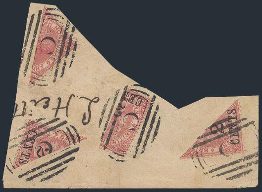 1735 22a image22a, BISECTS, 4 DIFF POSITIONS tied on piece by "C" grid oval cancels. F-VF (Cat $880 US on cover) (Image) Estimate 200.00+ $Cdn