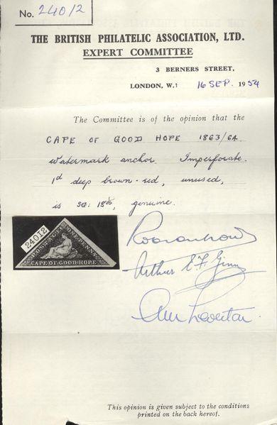 1766 1 image1, Brown-red shade. VF, NG (SG #3a - £3,750). Rare. Has 1954 BPA Certificate (Image) (View Certificate)