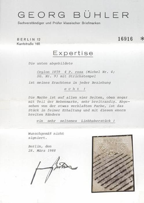 1824 5 image5, Scarce QV Four Pence Dull Rose imperf. VF, four full margins, neat open grid cancel, couple minor corner creases. Has 1988 Georg Buhler Certificate (Image) (View Certificate)