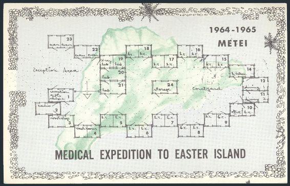 1835 333 image333, Along with special label tied by Easter Island 11 Feb 1965 CDS on postcard for MEDICAL EXPEDITION TO EASTER ISLAND. Addr to McGill University in Montreal. VF (Image) Estimate 40.00+ $Cdn