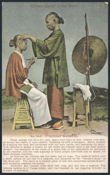 1850   imageUnused coloured postcard circa 1910 depicting a CHINESE BARBER IN THE STREET. VF (Image) Estimate 45.00+ $Cdn