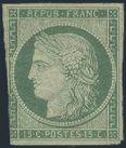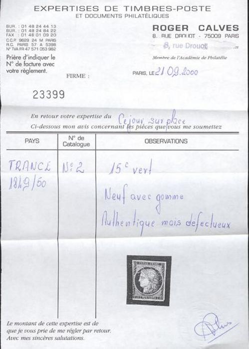 2060 2 image2, Rare 15¢ Green imperforate with ample margins except at LL, deep rich colour. F, OG, small flts do not detract from this scarce classic stamp. Has guarantee b/s's and with 2000 Calves Certificate. Scott $21,500 US (Image) (View Certificate)