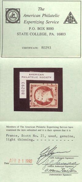 2068 21 image21, Four margins, deep rich colour, neat dotted cancel, VF, very slight thin. Has 1992 APS Certificate (Image) (View Certificate)