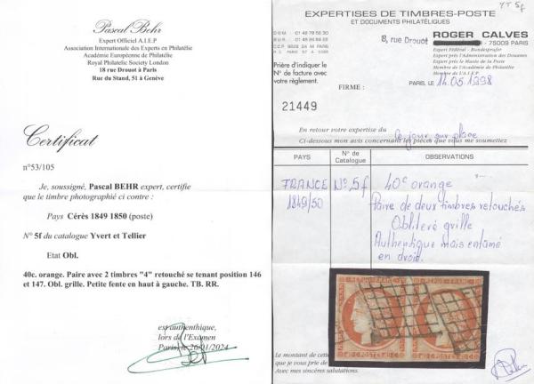 2063 7f image7f, Horiz pair of the rare 40¢ Orange TYPE II, neatly cancelled, excellent colour. F-VF. Signed by Calves & Roumet and has 1998 Calves Certificate and 2024 Behr Certificate (Image) (View Certificate)